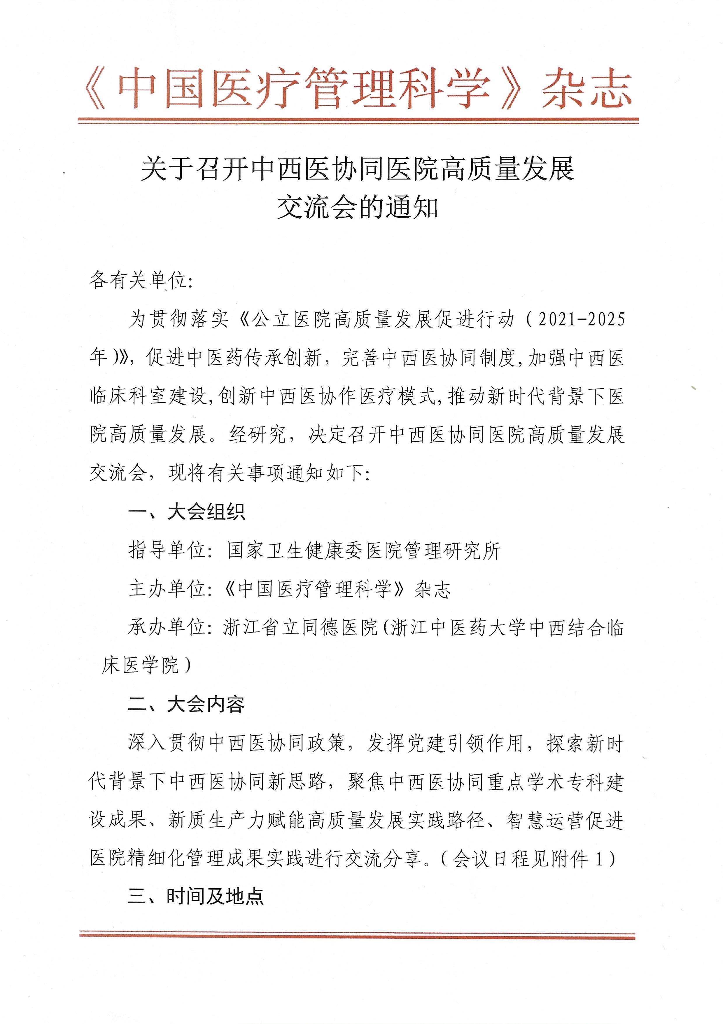 为贯彻落实《公立医院高质量发展促进行动(2021-2025年)》,促进中医药传承创新,完善中西医协同制度,加强中西医临床科室建设,创新中西医协作医疗模式,推动新时代背景下医院高质量发展。经研究,决定召开中西医协同医院高质量发展交流会,现将有关事项通知如下: